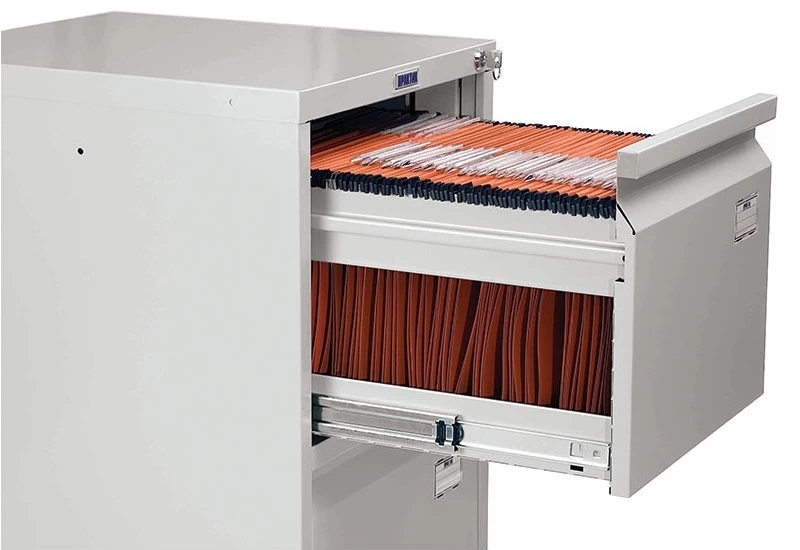 Картотечный шкаф Практик А-43 – это исключительно удобное и необходимое в любом современном офисе оборудование для эффективной работы с документами формата А4, рассчитанное на способ хранения в подвесных папках. О высоком качестве изделия свидетельствует сертификат ГОСТ 16371-2014, а также заключение Государственного санитарно-эпидемиологического надзора о соответствии санитарным нормам.Детали картотеки изготавливаются из качественных сортов стали высокой прочности с расчётом на длительное интенсивное использование. Это доказывают результаты промышленных испытаний: при полноценной загрузке, составляющей 20 кг на ящик, с успехом было проделано более 50 000 открываний. Ящики плавно и без усилий выдвигаются на всю глубину благодаря наличию телескопических направляющих. Для достижения наилучшей устойчивости изделие оснащено антиопрокидывающим устройством, не допускающим возможности выдвинуть два или более ящиков одновременно.